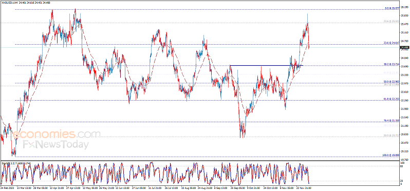 因此,预计银价日内将继续看空倾向。银价交投在50周期指数移动平均线(EMA)下方,这一均线形成看空压力。需要考虑到的是,若银价突破24.60美元/盎司且维持在该位上方,这将止住预期中的跌势,并导致银价再度上升。