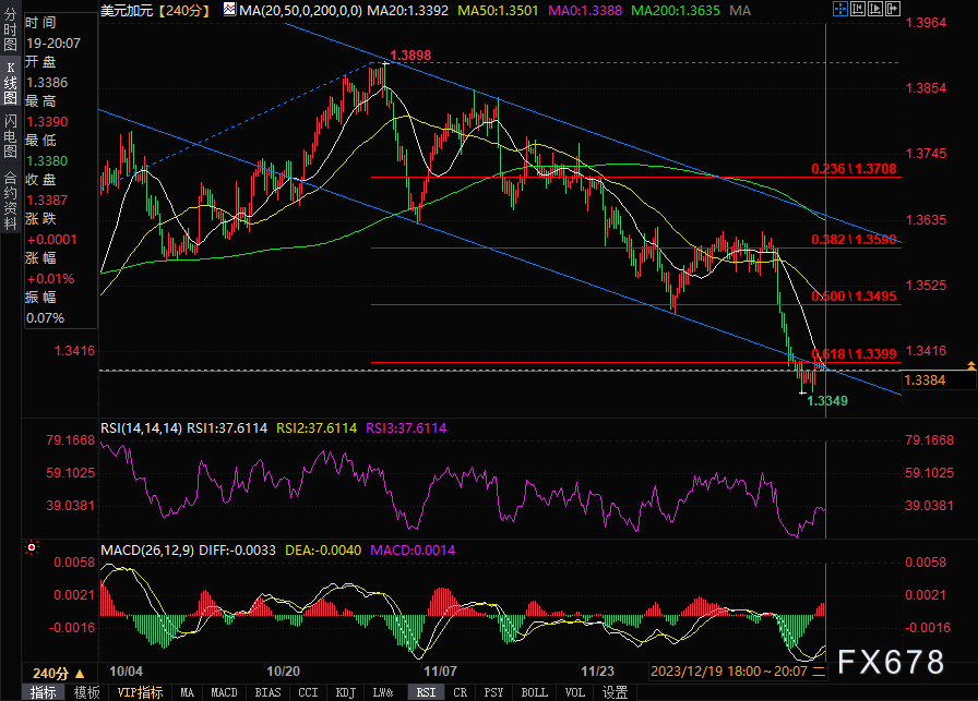 从技术面来看,如果该货币对走高,需要站上20均线和颈线以上的位置1.3400附近,7月至11月上升趋势的61.8%斐波纳契回撤位于同一区域。如果该货币对突破该水平,它可能会加速向1.3480-1.3500区域移动。1.3540上方的阻力位置是38.2%斐波纳契线1.3590。