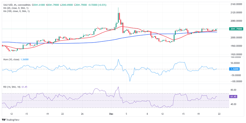 周五(12月22日)亚市早盘,现货黄金短线突然快速上升,一度升破2050关口,创近三周高点至2054.86美元/盎司,目前小幅回落至2049.18美元/盎司附近。FXStreet首席分析师Valeria Bednarik最新撰文,对黄金技术前景进行分析。
