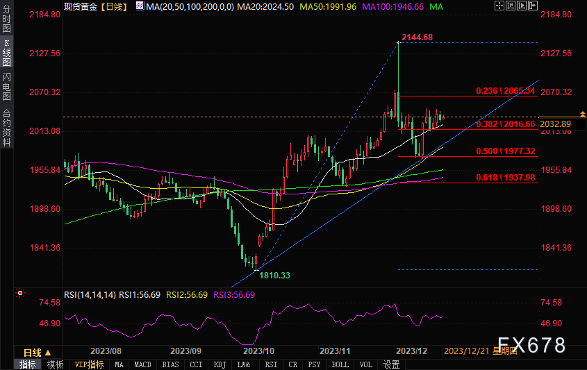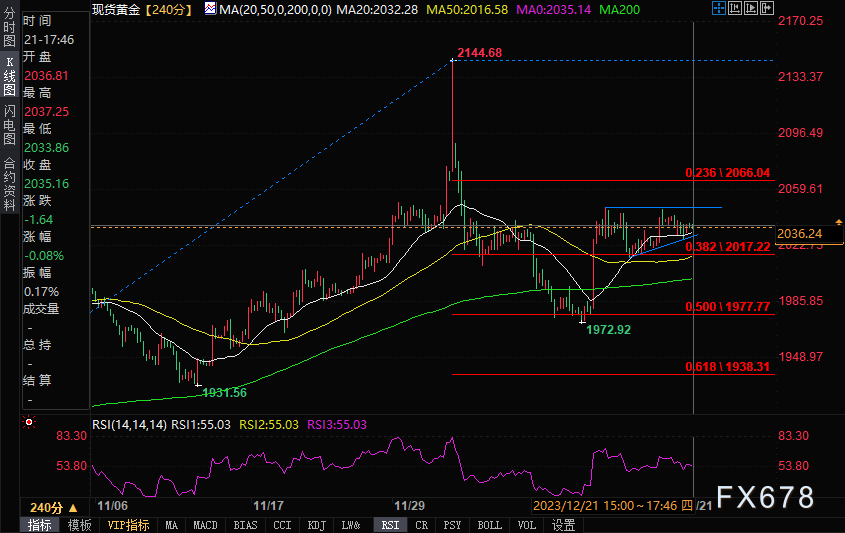 现货黄金维持窄幅震荡,盘中报2036.22美元/盎司,涨幅0.25%。
