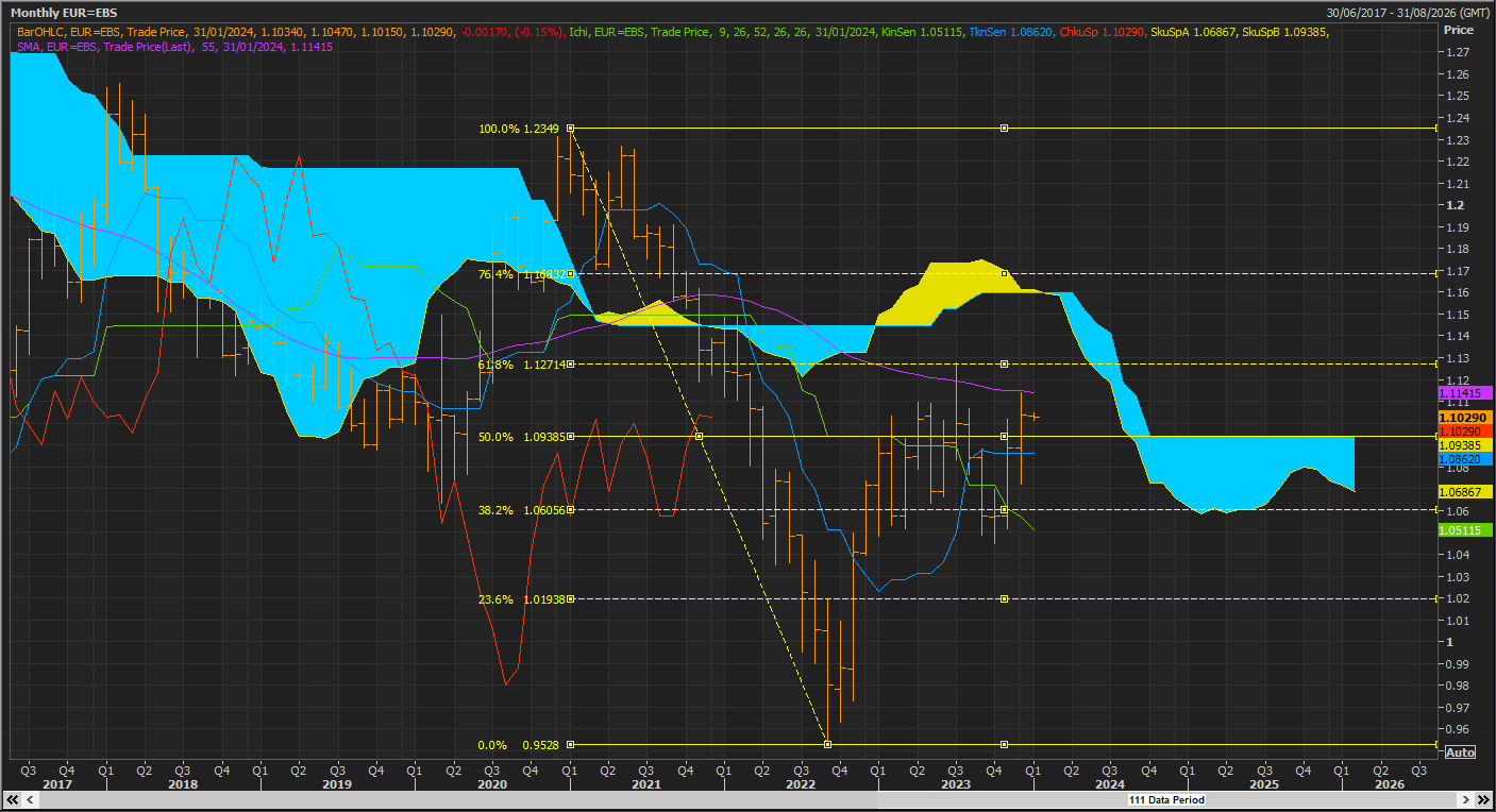 1.1683是2021-2022年从1.2349跌至0.9528的修正极限。美联储紧缩政策助长了这一跌势,而美联储今年料将放松政策。