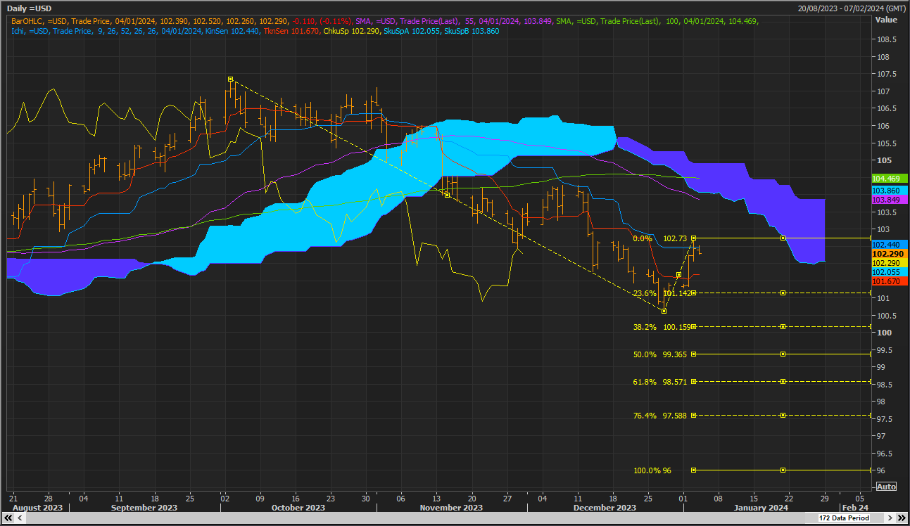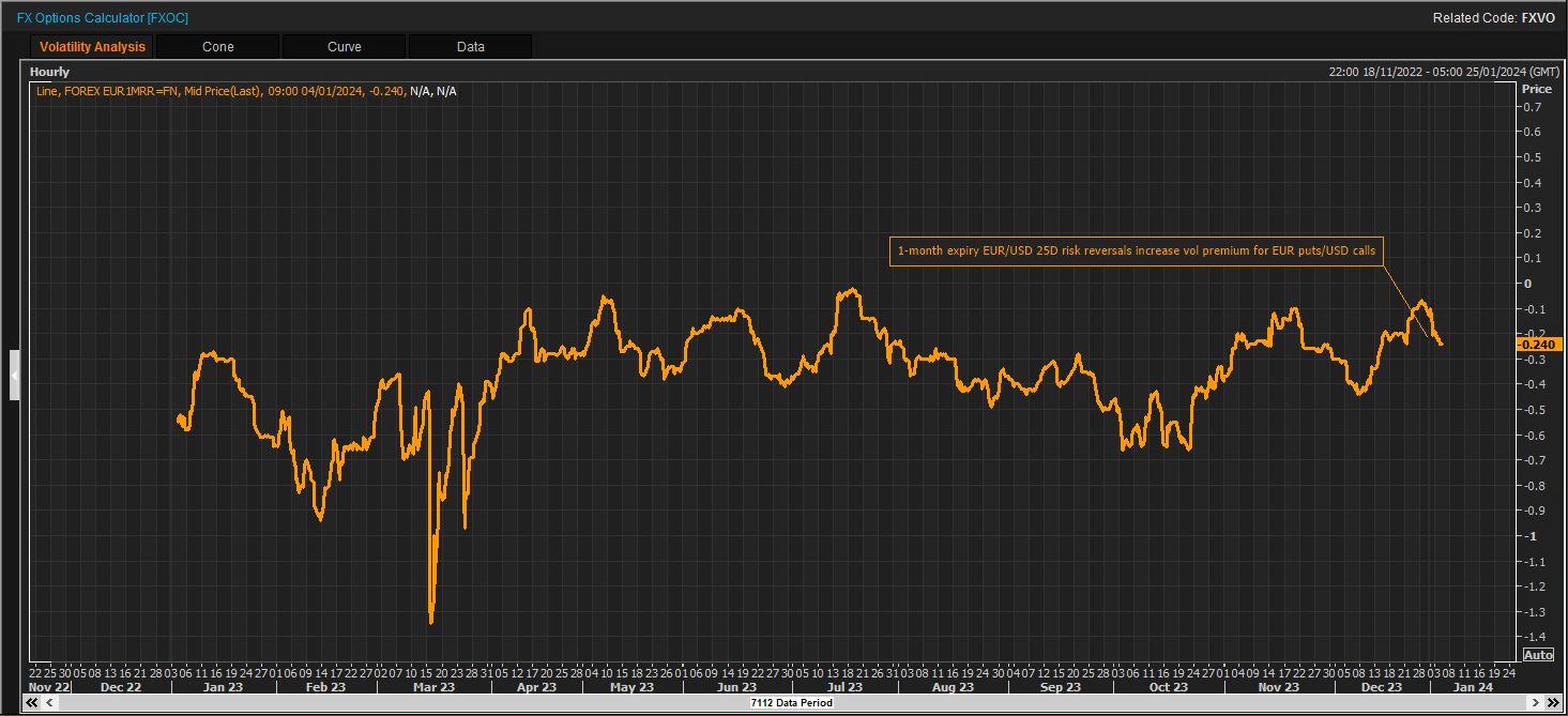 欧元/美元外汇期权隐含波动率在2024年初走高,周五的美国非农就业数据风险和更广泛的美元回升推动了迄今为止的期权需求。