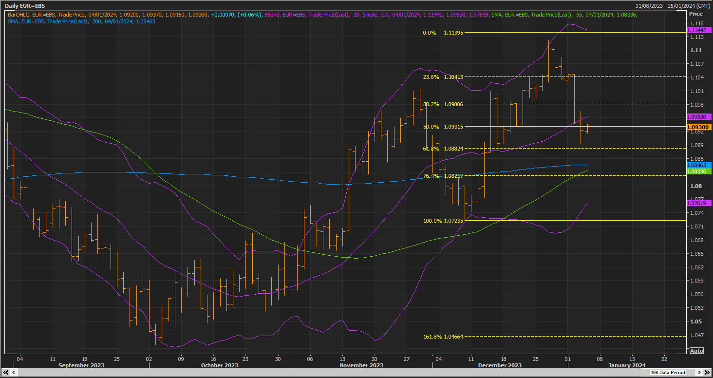 做多欧元/美元一直是去年最大的汇市押注,2023年尾和2024年初明显有获利回吐。