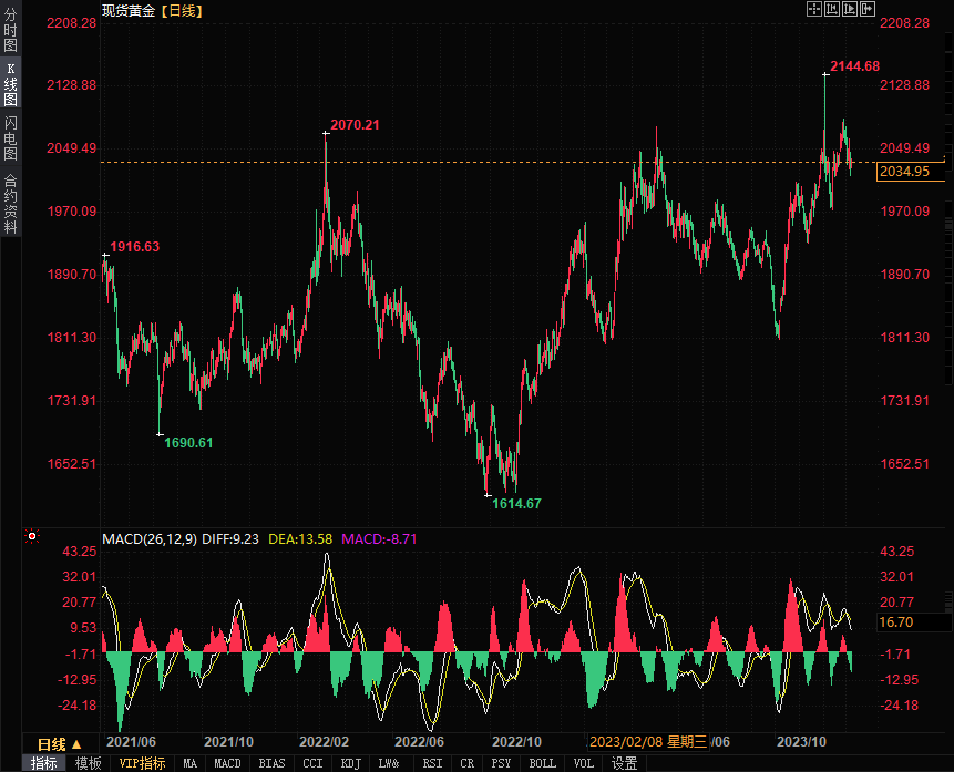 现货黄金保持日内反弹态势,当前金价报2035美元/盎司附近。针对金价的技术走势,我们进行了如下分析: