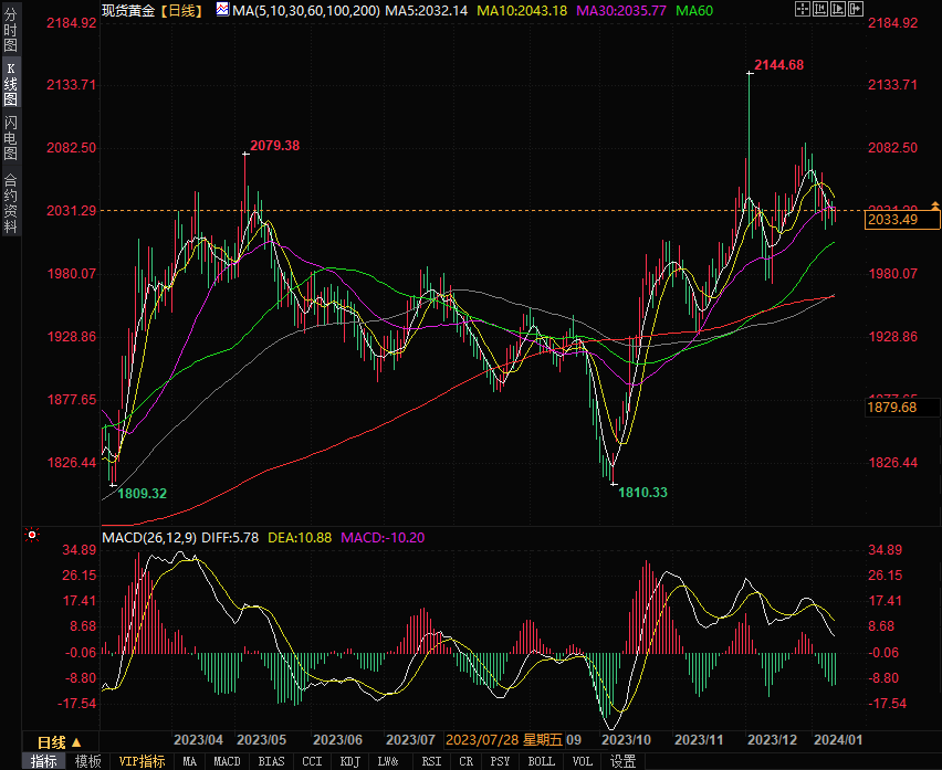 现货黄金延续前几日的震荡走势,目前交易价格接近2030美元,昨日曾一度跌至2020水平。