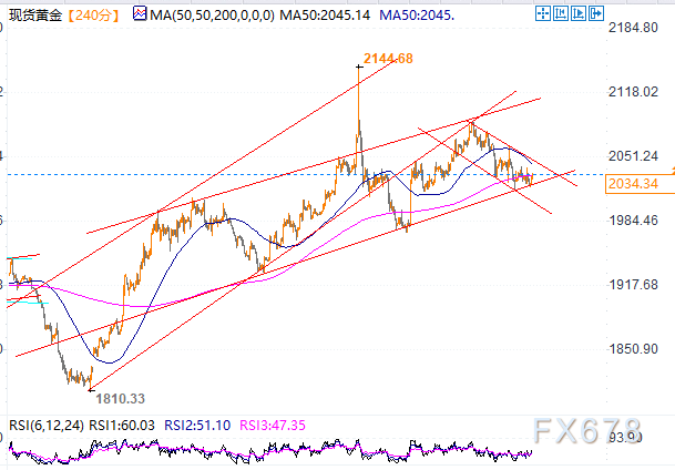 有海外分析师表示,若金价突破2044.85美元/盎司,这将推动金价实现日内升势,并测试最重要的阻力位2065.70美元/盎司,然后重新尝试下跌。未来一段时间内金价可能处于看空趋势。50周期指数移动平均线(EMA)形成看空压力。金价继续在小型看空通道内波动,目前等待金价恢复看空走势。若跌破2017可能为跌至1978打开空间。