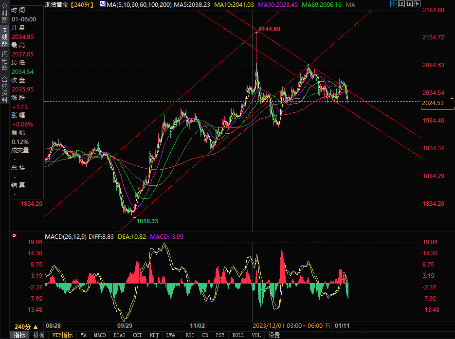 现货黄金在周三(1月17日)亚市尾盘突发性急跌,金价一度跌破2020美元/盎司大关,创出日内新低。以下是对黄金和白银日内技术前景的详尽分析。