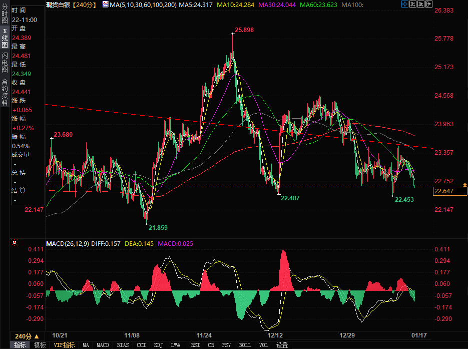 预计今日银价将在支撑位22.30美元/盎司与阻力位23.00美元/盎司之间波动。今日白银价格预期趋势为看空。