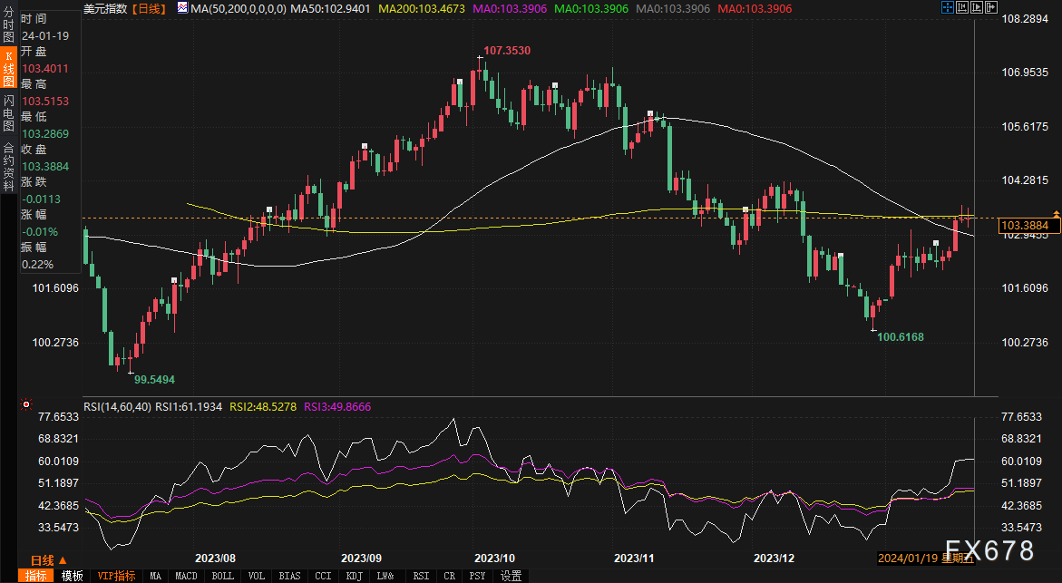 如果美元指数能够有效突破该区域,那么在上行路上的第一个阻力位是104.44,以100日移动均线的形式出现。如果行情继续走高,那么没有什么能阻止