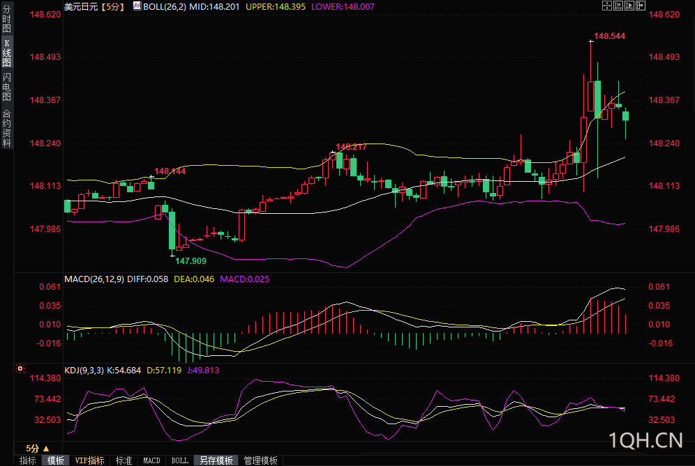 美元/日元突破148.405阻力位,将支持其向150.201阻力位移动。
