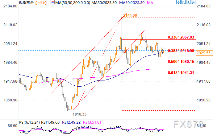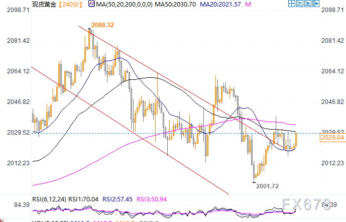 现货黄金周一收市下跌7.92美元,报2021.66美元/盎司,当天最低触及2016.48美元/盎司。