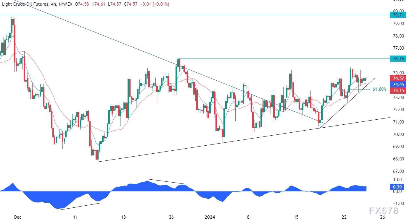 周三(1月24日),欧盘时段,原油价格震荡走高,