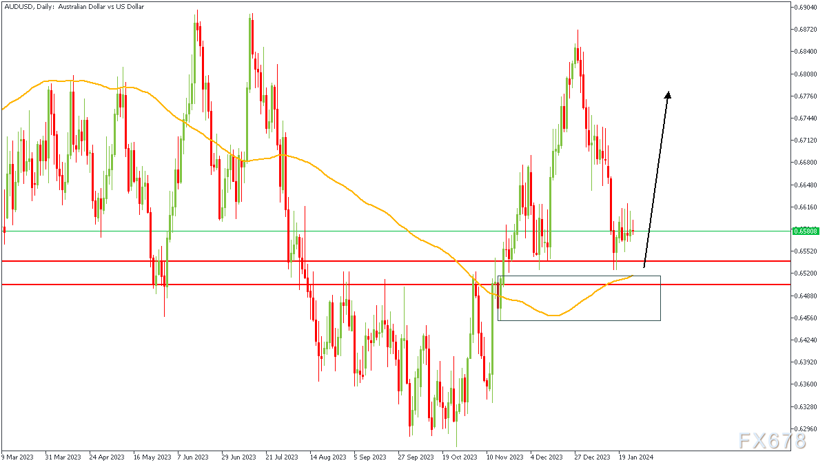 澳元兑美元连续几天迅速下跌,目前可以看到正在盘整;这种价格走势通常预示着看跌冲动的消退,为新的买入压力创造了空间。此外,涨平涨形态需求区、支点区和200日移动均线似乎都支持该区域的看涨反应。