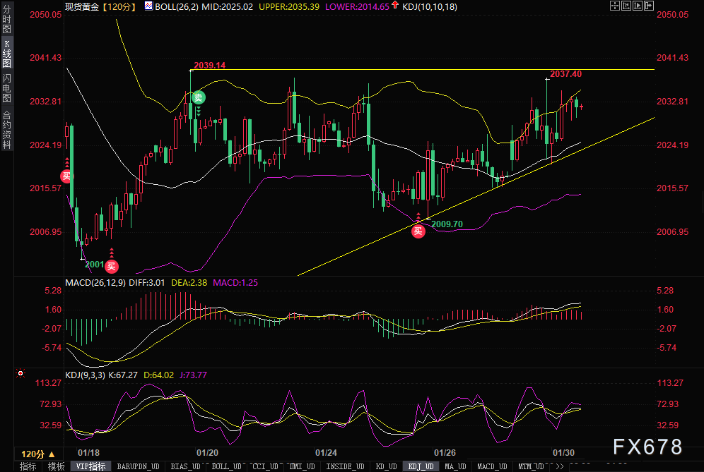 现货黄金2小时图)