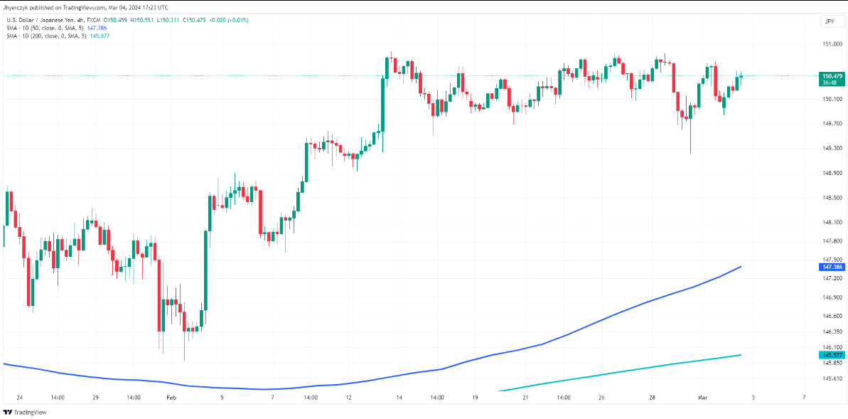 自近期突破上行以来,美元/日元已连续几天持平。尽管远高于支撑位,但它仍然容易受到近期修正的影响,下一个下行目标是上升趋势的50日移动均线147.386。
