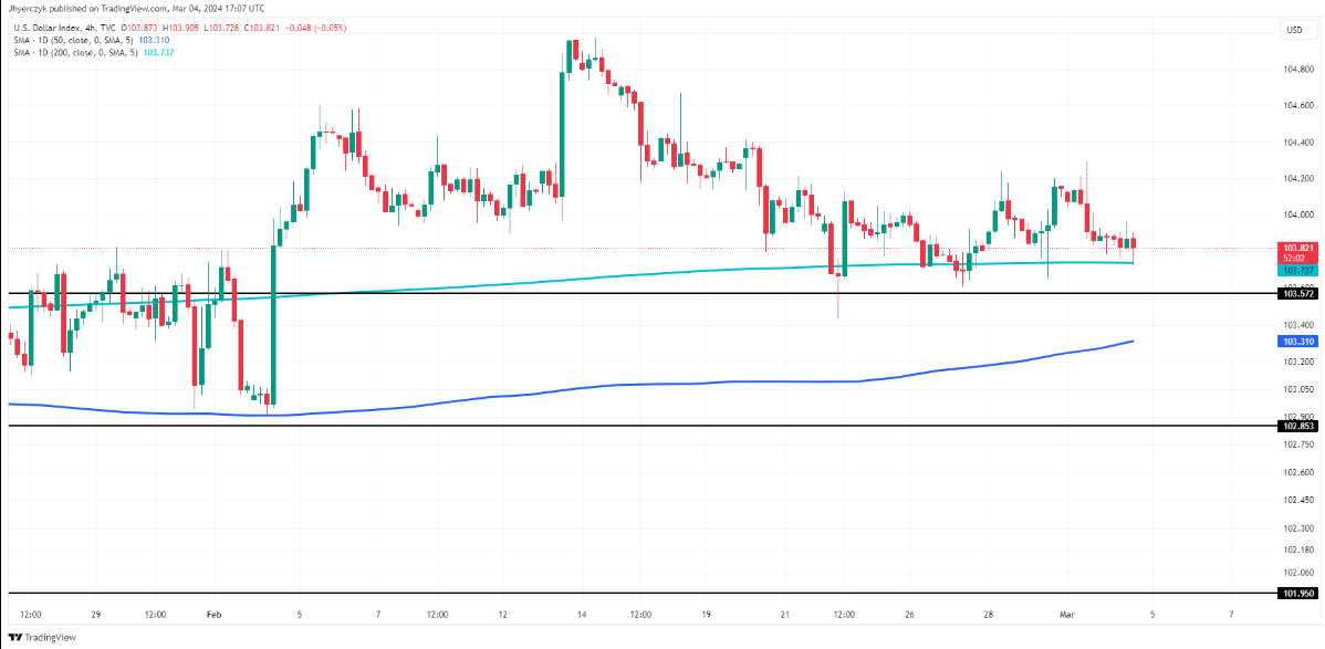 尽管趋势下跌,但美元正试图在200日移动均线103.737处建立支撑。如果未能守住该移动平均线,可能会给多头带来麻烦,因为下一个主要支撑位是潜伏在50日移动均线103.310。