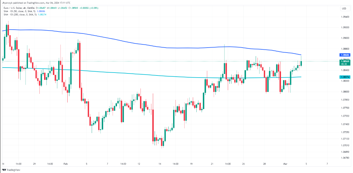 从技术上讲,今天的0.09%上涨使欧元/美元有能力挑战 50日移动平均线1.0869。在首次测试该水平时寻找卖家,但如果买家能够触发突破,则准备好加速上涨。