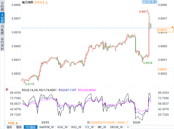 (美元/瑞郎60分钟走势图 来源:易汇通)