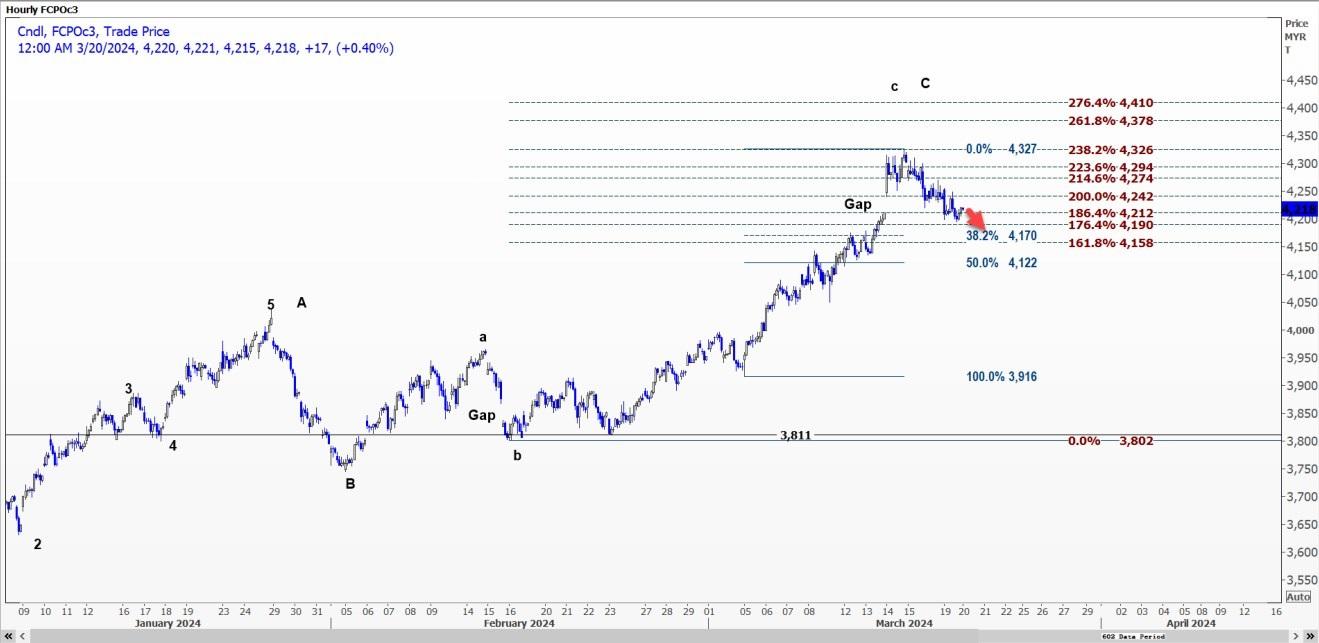 技术面看,棕榈油FCPOc3可能跌至每吨4158-4170林吉特的范围,因为3916林吉特或3811林吉特的上涨趋势已经逆转。