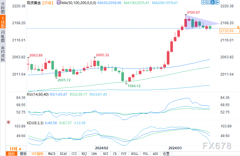 现货黄金报2152.84美元/盎司,跌幅0.34%。