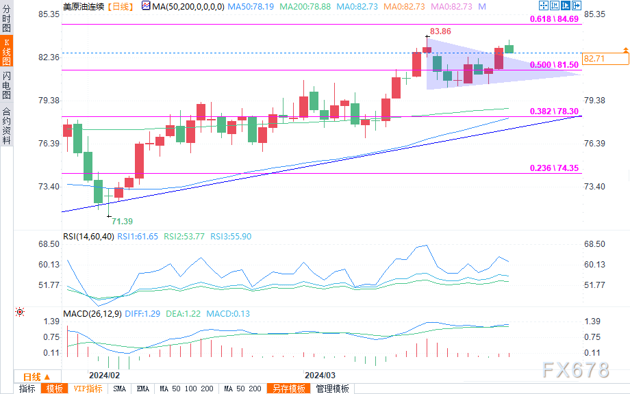 周一(4月1日),WTI原油价格震荡走跌,盘中报82.81美元每桶,跌幅0.36%。由于多个国家的市场因复活节假期休市,交易量清淡。