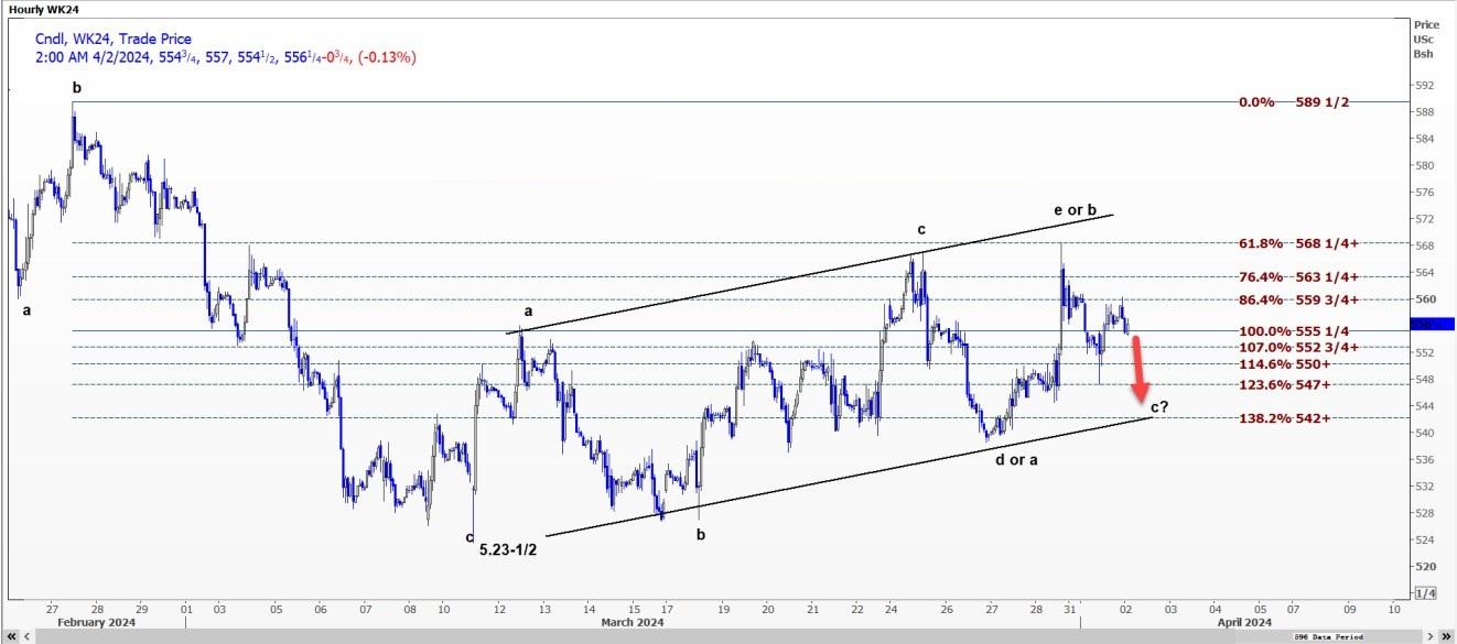 CBOT小麦WK24可能会重新测试每蒲式耳5.47美元的支撑位,跌破该支撑位可能会导致跌至5.42美元。